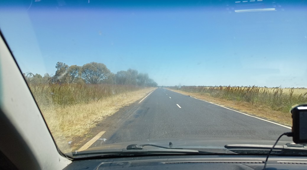 The soil is red, although I suppose a few degrees less bright than the soil near Alice Springs. The vegetation is relatively typical of a place that’s semi-arid – low scrub with spinifex and saltbush, and smallish eucalyptus trees. It’s the kind of landscape that needs time to soak in, I think, as it’s not one to blow its own trumpet, much of the time.