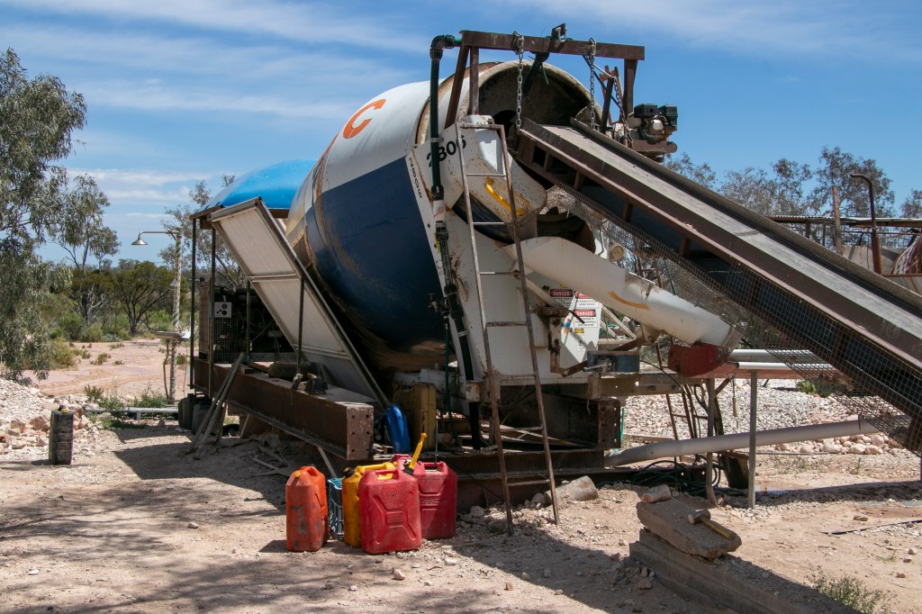 To see if you have any good opals, you have to sort your diggings (with the help of a cement mixer/tumbler, and then give it a good wash to get the dust off. Then you look at the rocks in the dark under UV light to see if anything glows – opals glow under UV light! Told you it wasn’t easy. Luckily, Lightning Ridge has a community wash plant, and we got to see it at work.